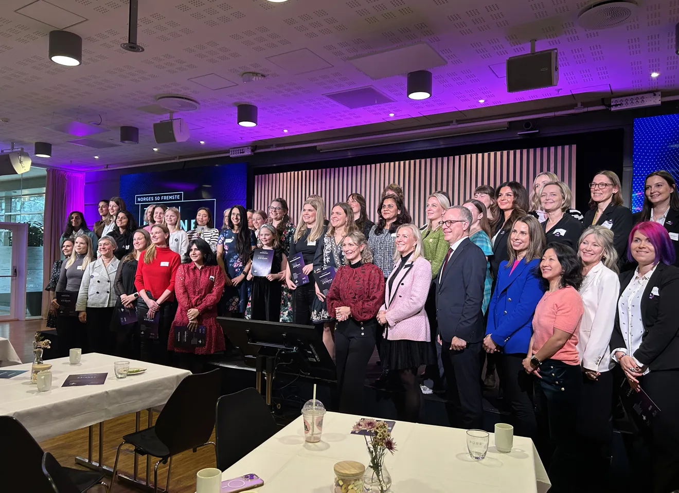 – Gratulerer til alle dere dyktige kvinner. Dere går foran, og likestilling i næringslivet er viktig. Politiske grep fungerer, det ser vi blant annet med kvotering til styrer, der kvinneandelen nå øker, hevdet næringsminister Cecilie Myrseth.