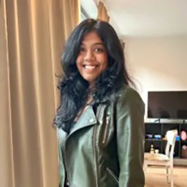 Dalal is presenting a poster during the symposium