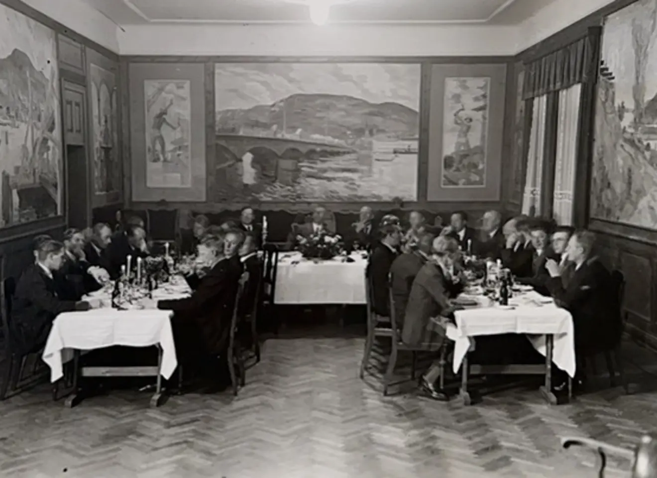 I forbindelse med stiftelsen blir det holdt en stilfull fest på Grand hotell i hovedstaden, hvor stortingspresidentene Wollert Konow og Magnus Halvorsen er til stede, sammen med blant andre arbeidsminister Bernhard Brænne, redaktør Nils Vogt i Norsk Presseforbund og direktør Peter Helgevold fra NTB.