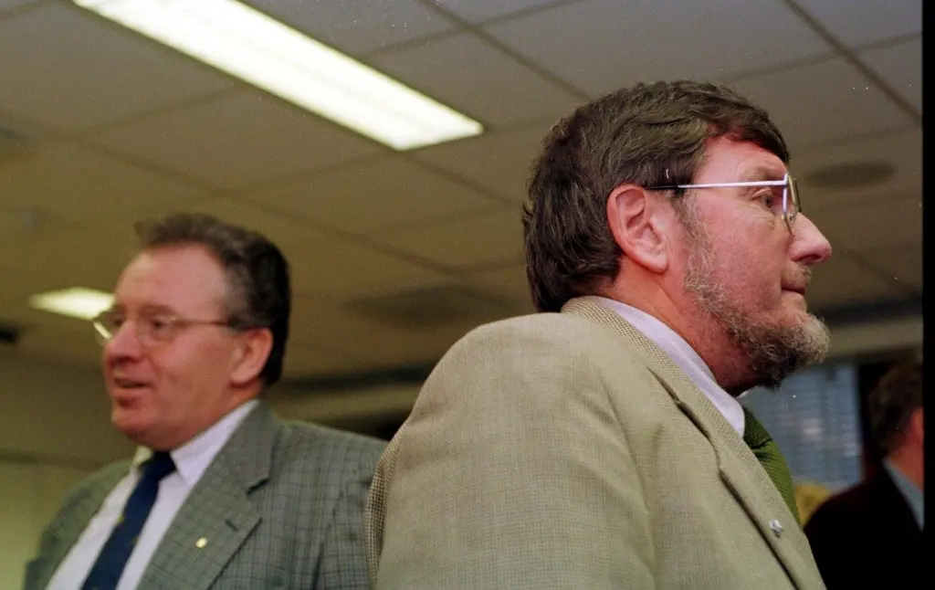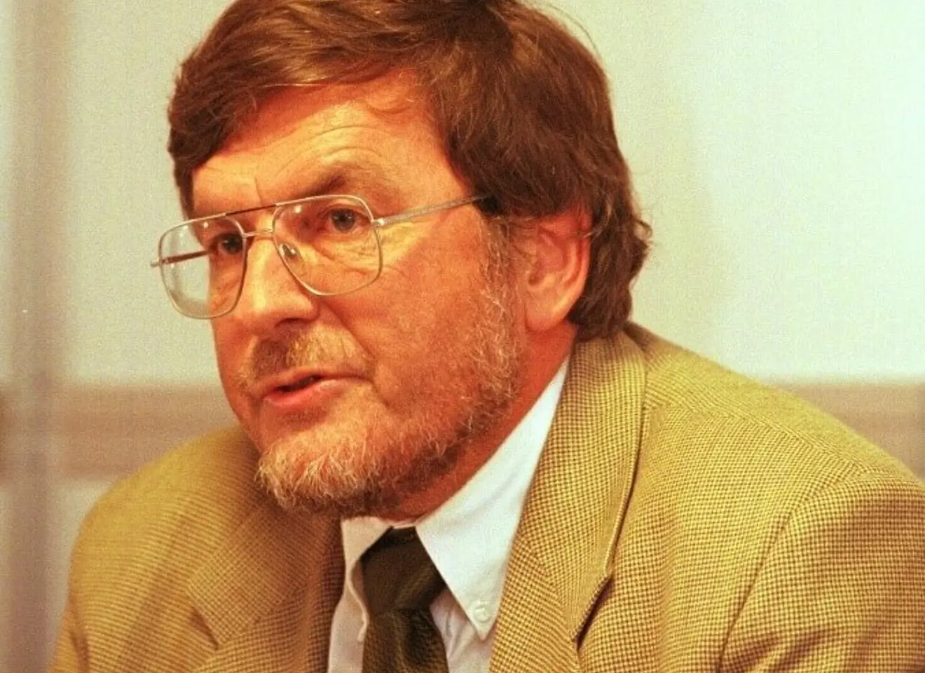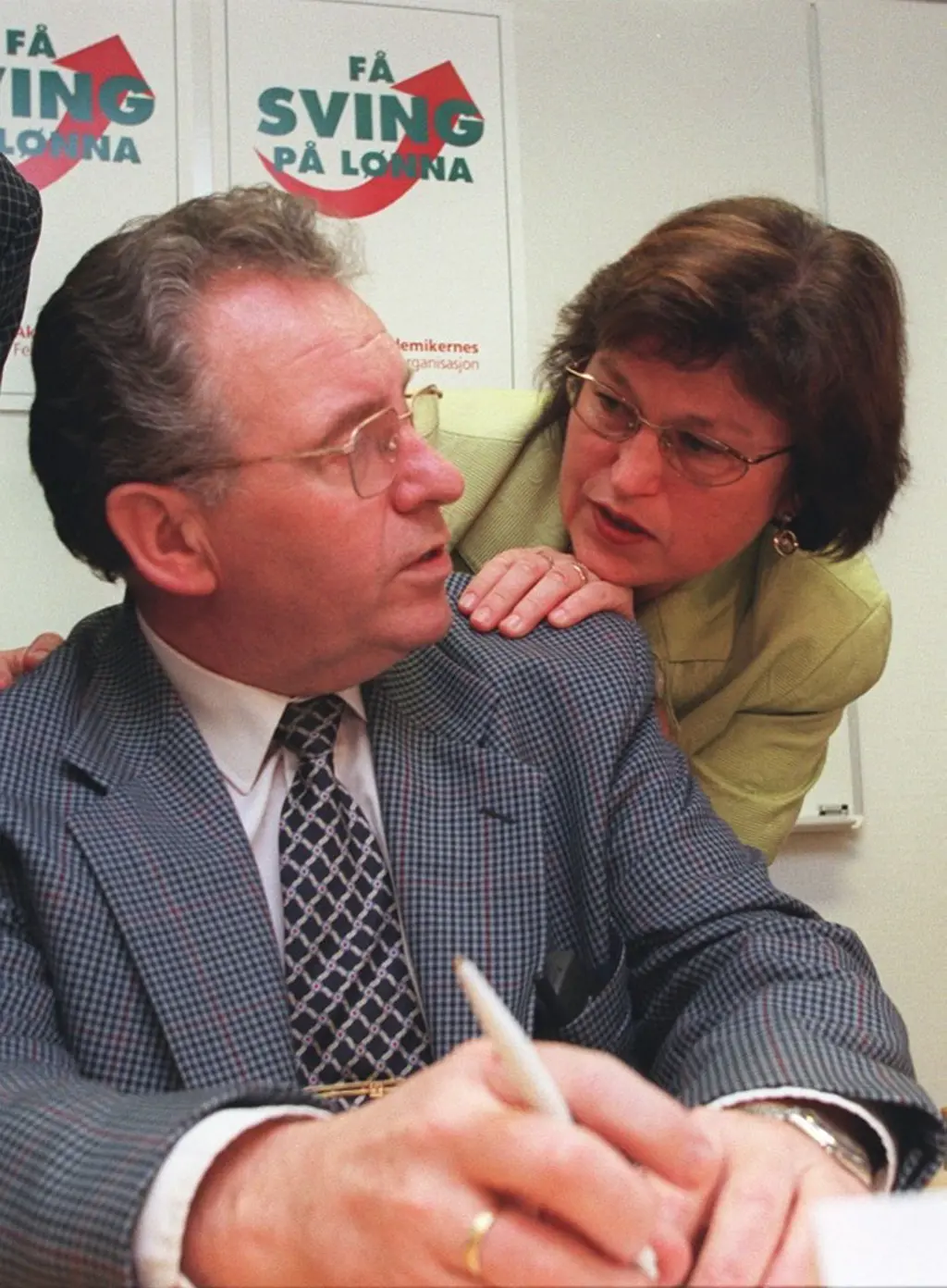 NY HOVEDORGANISASJON: NIFs president Einar E. Madsen blir Akademikernes første leder. Bildet er tatt på pressekonferansen 20. oktober 1997, da den nye hovedorganisasjonen blir presentert (Foto: Gunnar Lier, NTB).