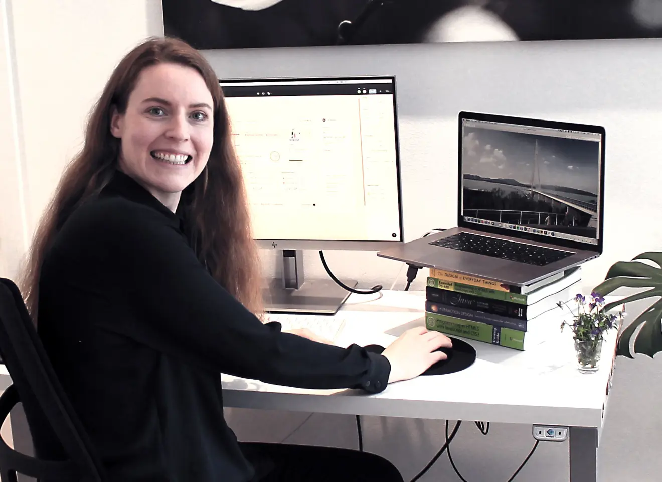 – Mange offentlige etater har ekstra behov for rask digitalisering – som NAV for å kunne gi ut dagpenger til alle som trenger det, og det skjer mye innen VR/AR som gjør det lettere å samarbeide selv om man ikke er på samme sted, sier hun. Selv jobber hun nå for tiden mye med et prosjekt for Statens vegvesen med å lage en digital tvilling av den planlagte 5,5 kilometer lange flytebrua over Bjørnafjorden (verdens lengste) som er en del av fergefri E39 sør for Bergen.