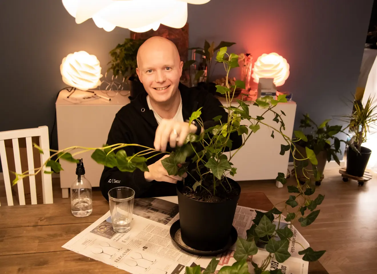 Styreleder Kent Varmedal i Oslo avdeling steller godt med plantene sine.De symboliserer grønn vekst.