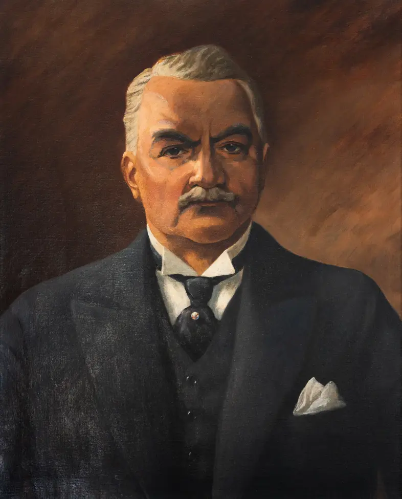 ENEREN: Sam Eyde ble æresmedlem i Ingeniørforeningen i 1914. Maleriet av Ernst Wolff-Malm henger i Birkeland-Eyde-rommet i Ingeniørenes Hus i Oslo (Foto: Tekna).