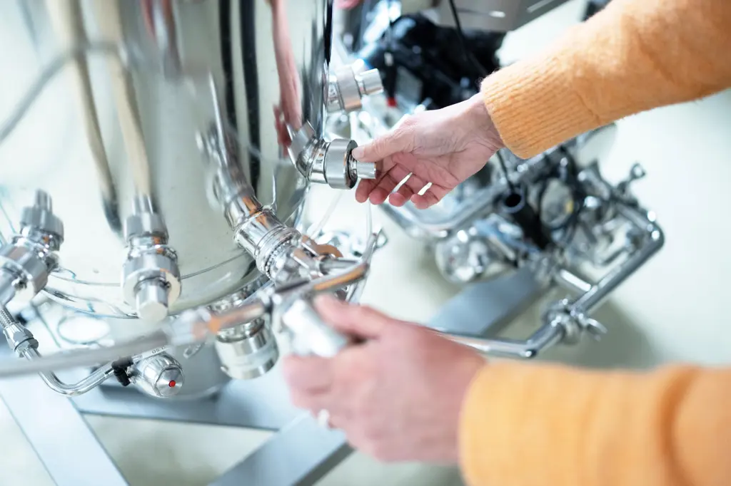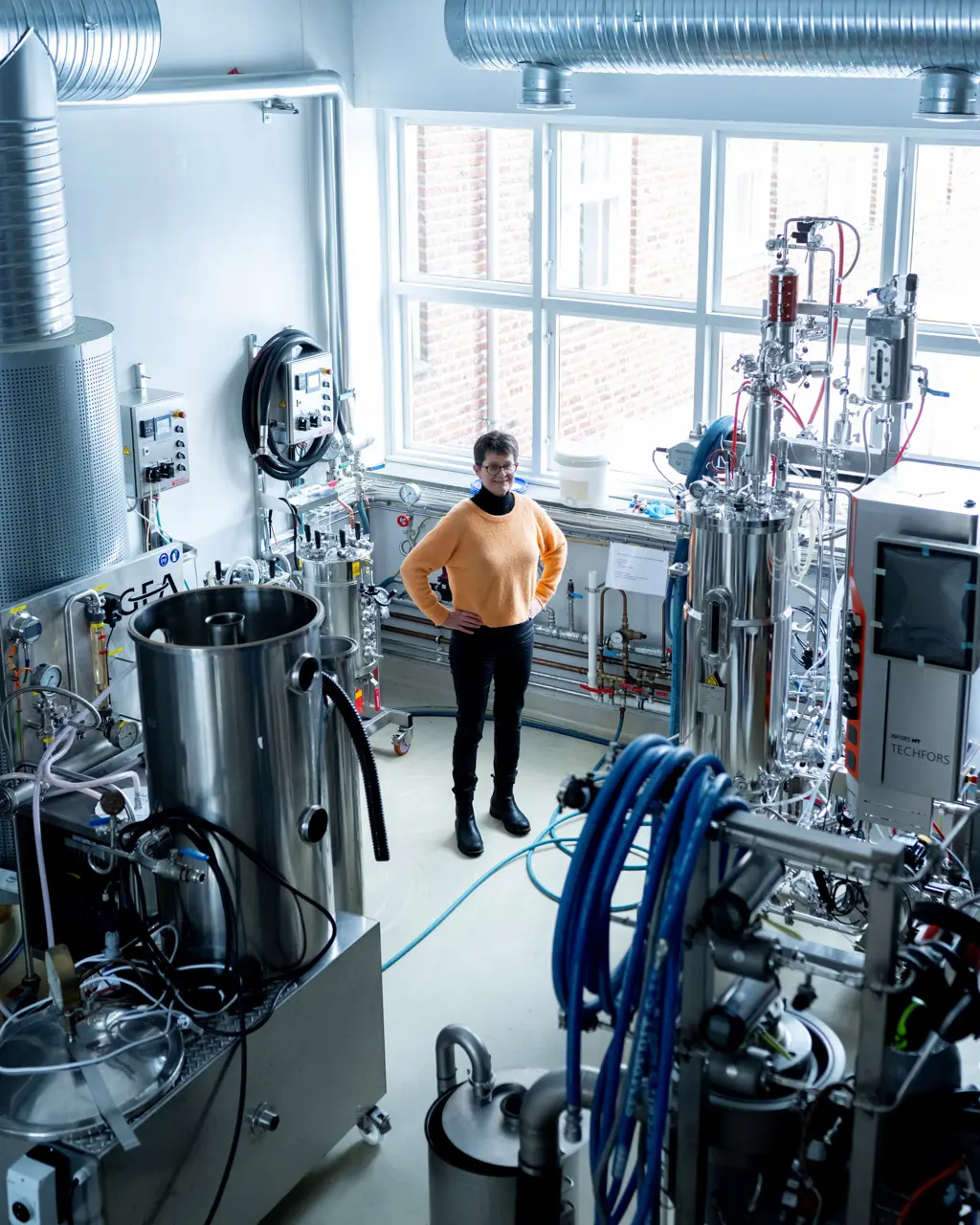 I de store stålkolbene foregår hele prosessen, fra fermentering til vasking, sentrifugering og til slutt spraytørking av gjær. Da gjenstår bare et gulbrunt pulver som blir innlemmet i kraftfôret, og fungerer strålende som proteinkilde.