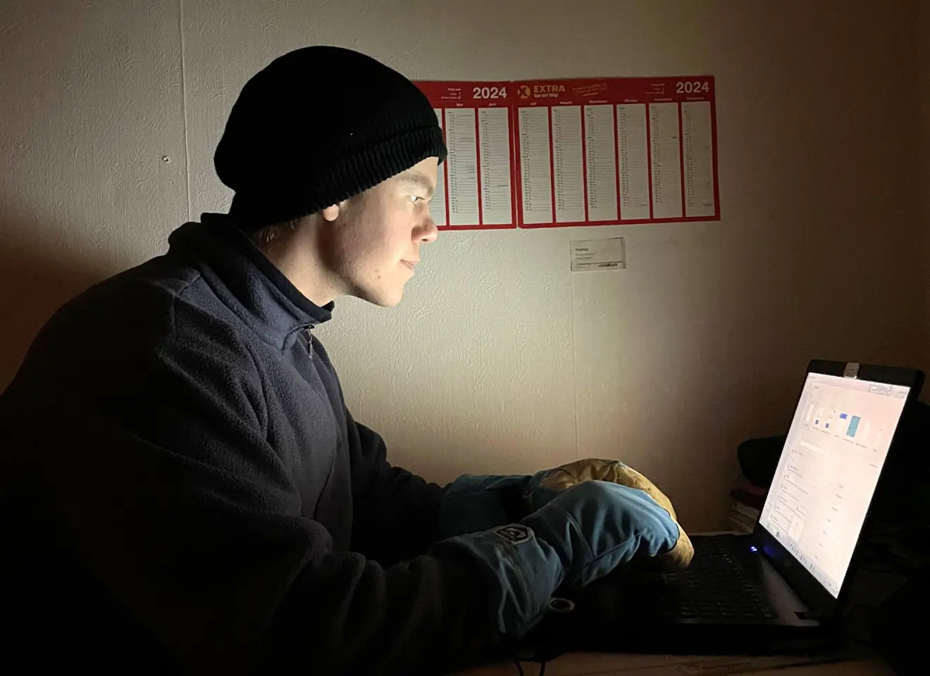 Det er så kaldt på soverommet mitt at jeg får gåsehud. Vi dusjer på treningssenteret for å spare på varmtvann, og om morgenen drar vi fortest mulig på lesesalen, hvor det er varmt. Jeg bruker blant annet polvotter de gangene jeg må ha Teams-møte hjemme, sier Teknas studentleder Christoffer Røneid. Han går på 5-årig masterstudium i fysikk og matematikk ved NTNU i Trondheim, hvor han bor i et kollektiv med tre andre studenter.