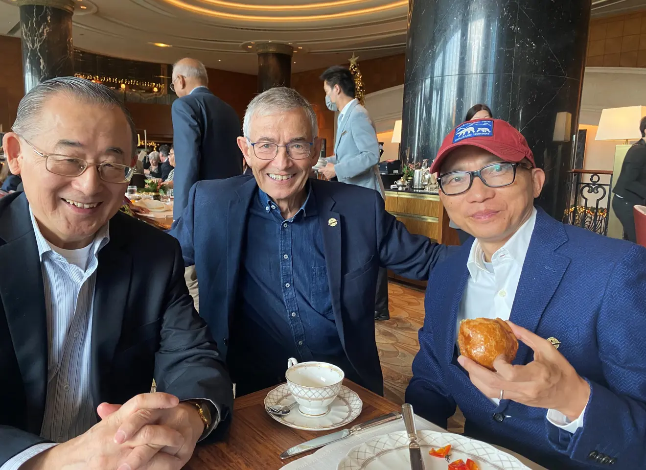 Her er Svein Sjøberg i midten med UNESCO-direktør Qian Tang til venstre og Tencent-gründer Charles Chen Yidan til høyre. Bildet er tatt i Hongkong i desember 2023 i forbindelse med at Sjøberg er jurymedlem for Yidan-prisen til fremme for global utdanning.