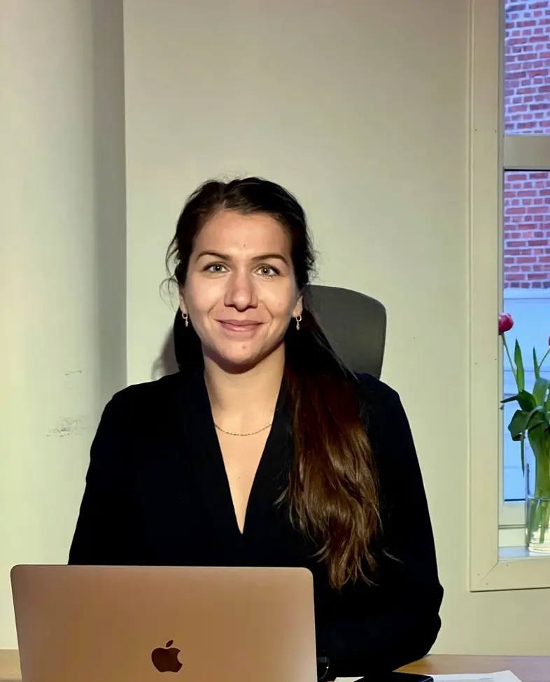 Her er Madeleine Storås, overingeniør i Direktoratet for byggkvalitet, på hjemmekontoret i en leilighet i Oslo.