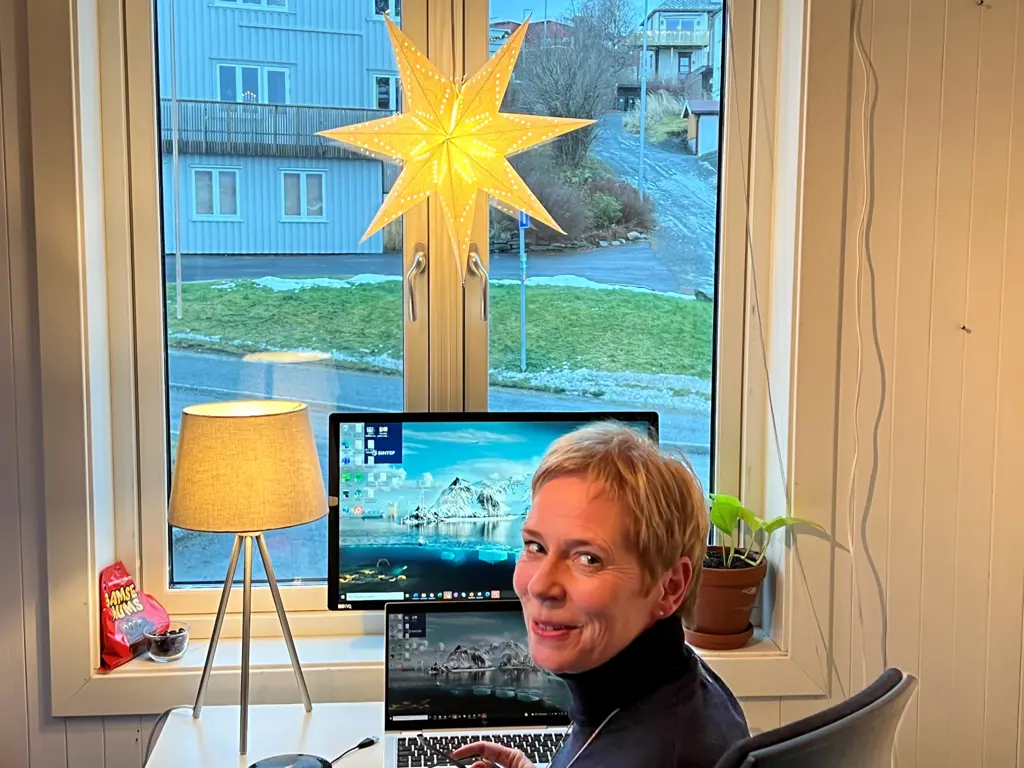Forskningssjefen veksler mellom spisebordet og gjesterommet på hjemmekontoret fra SINTEFs hovedkontor i Trondheim. På spisebordet sitter hun med en bærbar datamaskin, en mobiltelefon og et brilleetui. Tidvis bytter hun arbeidsplass til det tidligere barnerommet, som senere ble gjesterom, før det nå også er blitt hjemmekontor. Her er det en ekstra skjerm, faglitteratur på senga, og kanskje aller viktigst; Bamsemums i vinduskarmen.