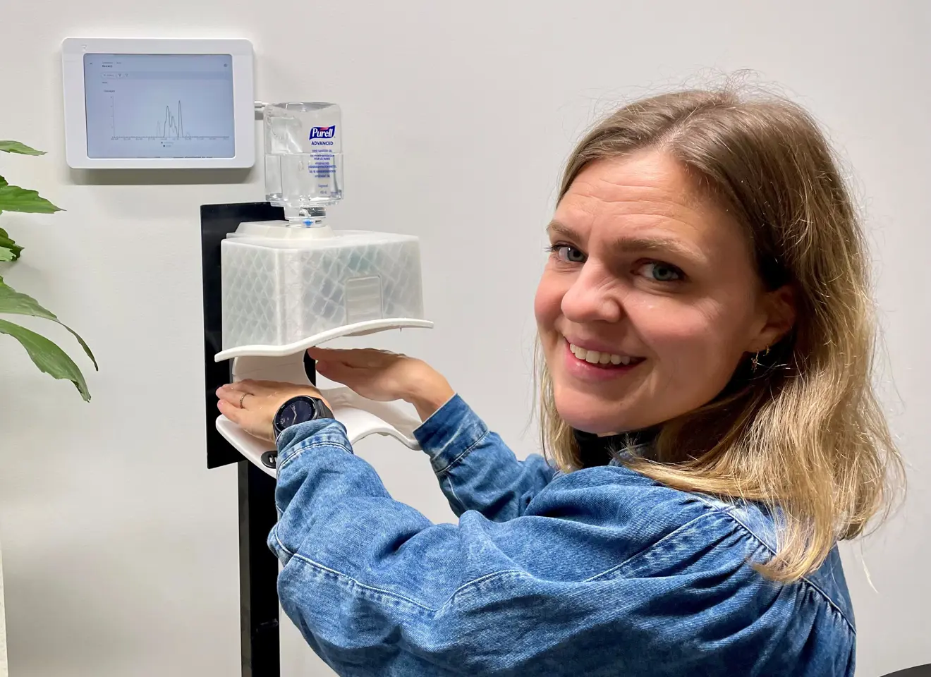 – Resani utvikler et sanntids analyseverktøy for håndhygiene. Vi har utvikle egne, mer effektive, håndsprit-dispensere som rengjør hender og sender data til skyen. Jeg er maskiningeniør, så jeg jobber med hardwaredelen av konseptet vårt. Akkurat nå er jeg med på å bygge en ny serie med demo-dispensere som skal installeres på et sykehjem på Østlandet. Jeg ser også på hvordan vi skal skalere opp produksjonen sånn at vi kan få levert enda flere dispensere så snart som mulig.