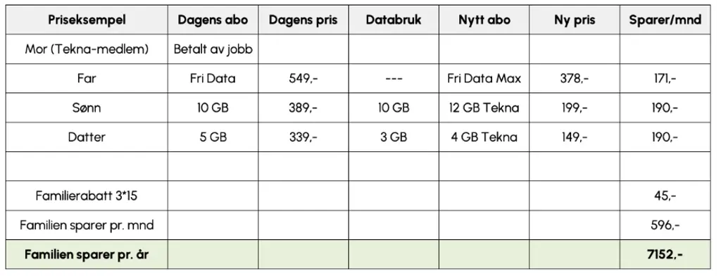 If you’re paying for multiple family members, a family plan could be more cost-effective. With Chilimobil, you get an additional discount of NOK 15 per family member – on top of your Tekna membership discount.