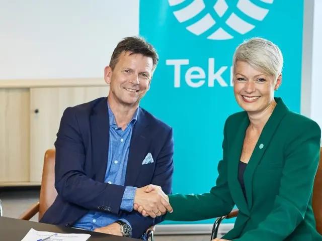 Arild Andersen, CEO of Handelsbanken and Secretary General of Tekna Line Henriette Holten are satisfied with the agreement.