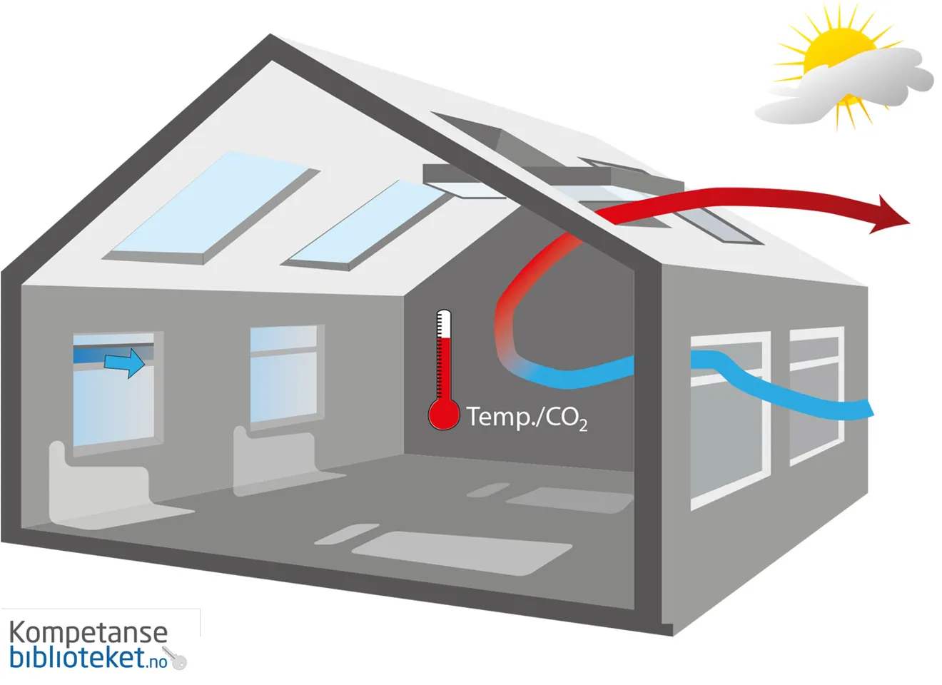 Varm luft som stiger kan skape luftbevegelse i naturlig ventilerte boliger når det er kaldere inne enn ute. Vindsug ved utløpet av ventilasjonskanalene er den andre viktige drivkraften for naturlig ventilasjon. Også vindtrykk ved friskluftinntakene bidrar til å skape luftbevegelse.