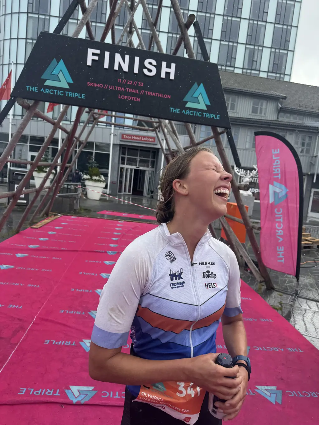 Eller som da hun debuterte i triatlon i Lofoten i sommer: Kan man gjennomføre uten karbonsykkel, karbonsko og masse dyrt utstyr?
