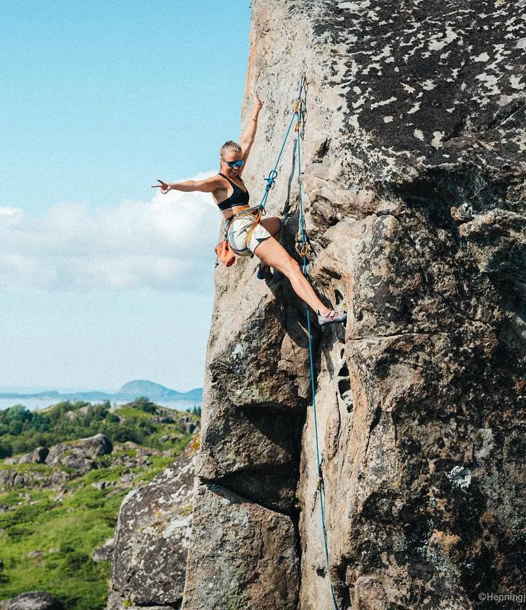Hun klatrer og står på randoné i fjellet, hopper i fallskjerm, dykker i fjæra og melder seg på spontane triatlon når de dukker opp.