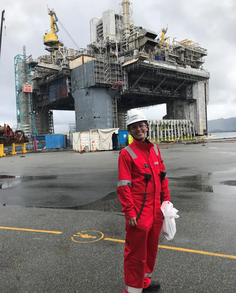 Andrea Kursetgjerde (29) har mastergrad i marinteknikk fra NTNU i 2017, og jobber som sivilingeniør i Aker Solutions. Der har hun blant annet jobbet med prosjekter som Equinors Platform Upgrad av Njord A , Arctic Offshore Farming for NRS, og elektrifisering av Troll feltet - TWEL, for Equinor. Vi har spurt henne: