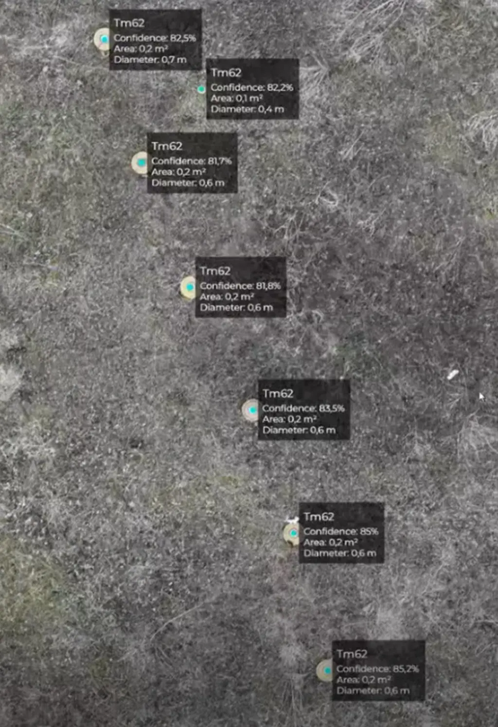 De ulike gjenstandene får også en prosent, som viser hvor sannsynlig det er at dette er en landmine:
