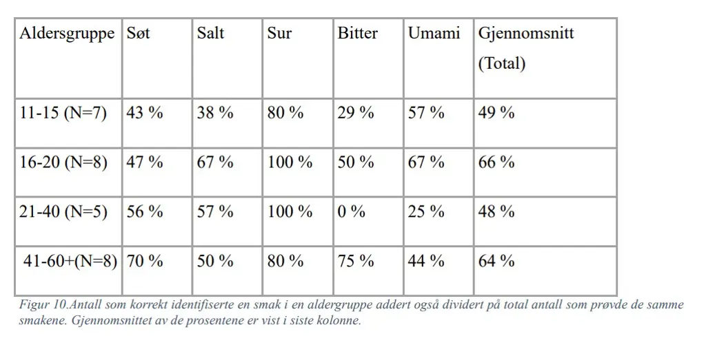 Den eldste gruppen presterte godt på flere av smakene, kanskje særlig på den søte delen.