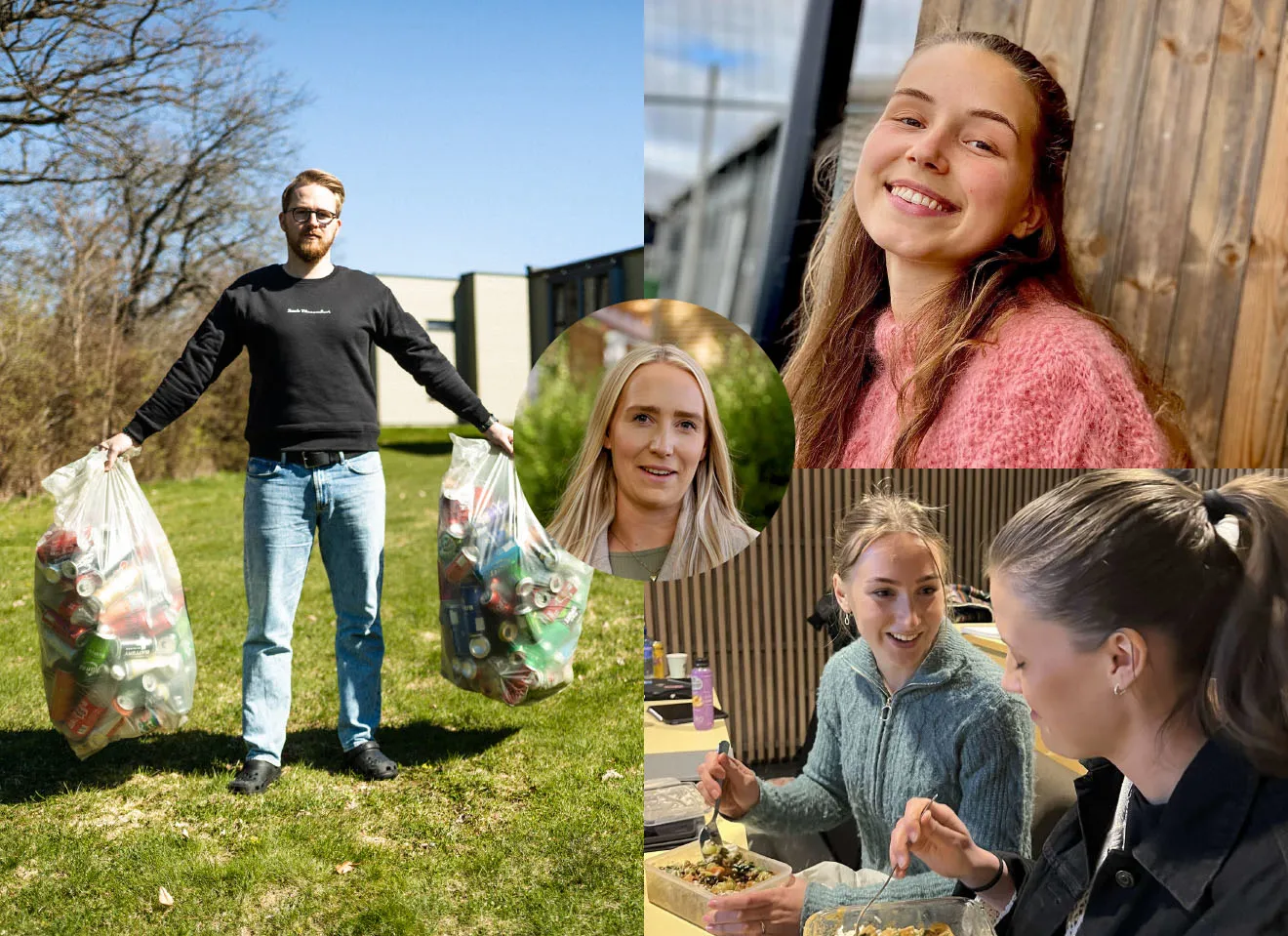 I gangen vitner søppelposer fylt med pant om et vorspiel-vennlig kollektiv. Noe som faktisk også bidrar til økonomien, fordi: